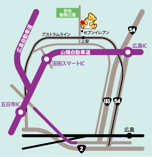 山陽自動車道「沼田スマートIC」から約3km、「広島IC」から約4km。