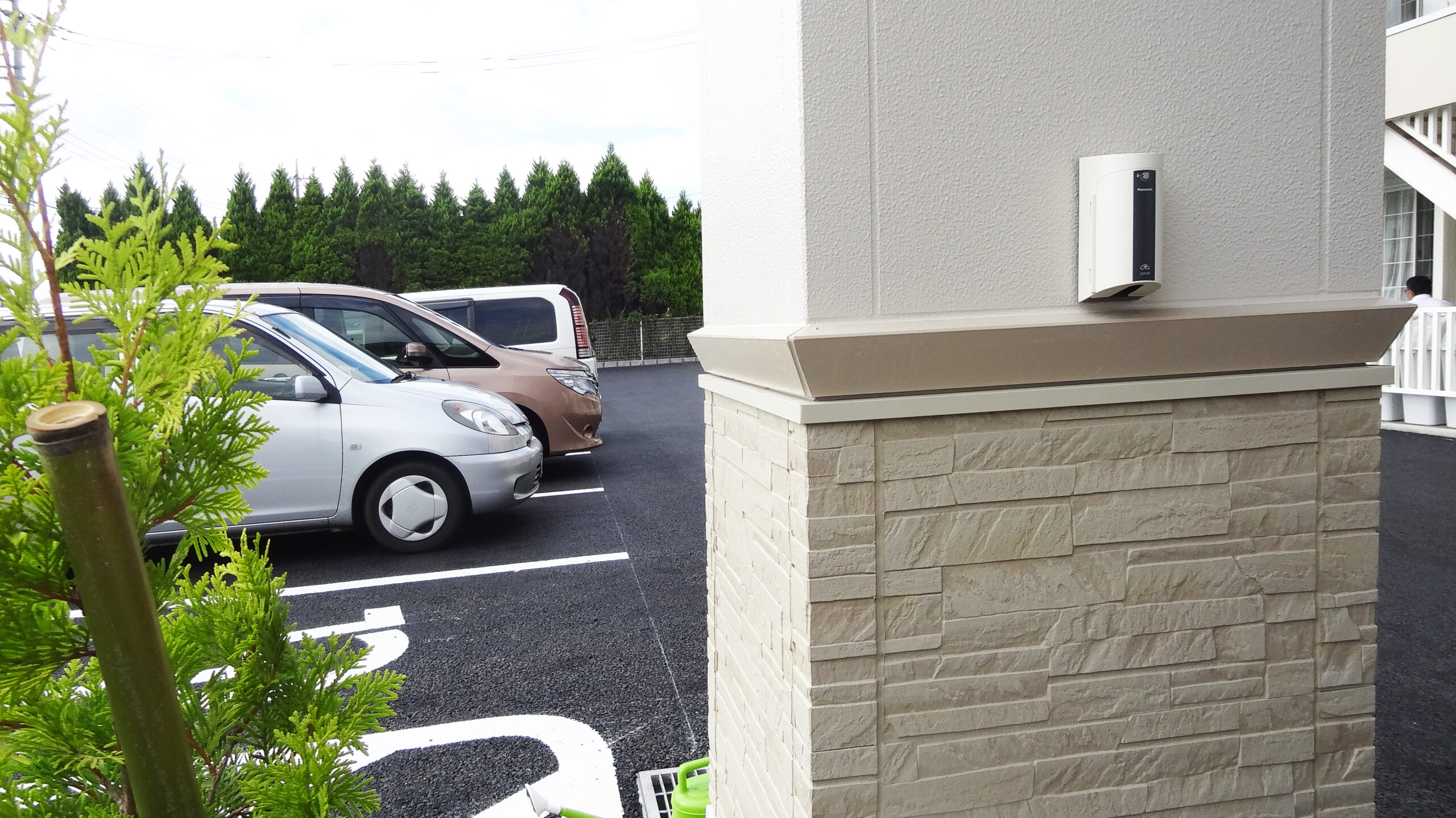 EV(電気自動車) 用の200V通常充電用コンセントを車寄せの柱に設けております。