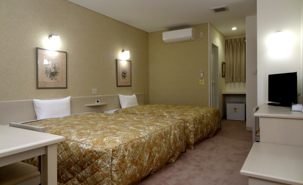 全室にクイーンサイズベッドを2台設置しております。ひとつのベッドが幅154cmでダブルベッドより一回り大きいサイズですので、それぞれに2名は十分お休みいただけます。したがって、1名からご家族4~6人まで1室でお泊りいただけますが、ご希望により、エキストラベッド(シングルサイズ)をご用意させていただきます(1台2,200円/1泊)。