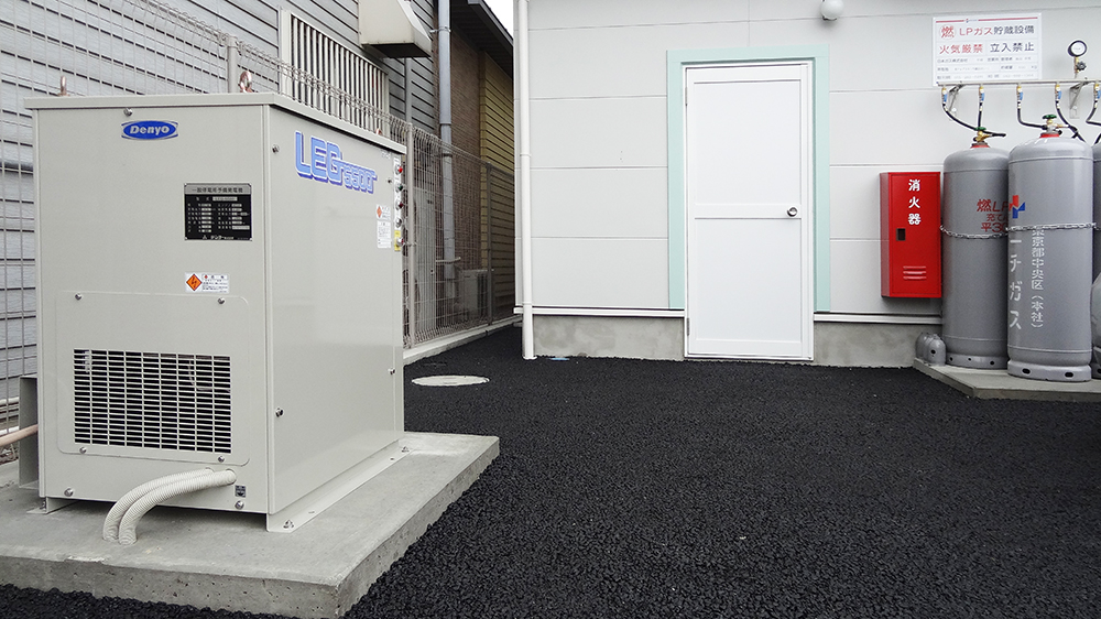 万一停電の際は、自動的に発電機が起動し、LPGをエネルギー源とし、少なくとも数日は電気を供給します。