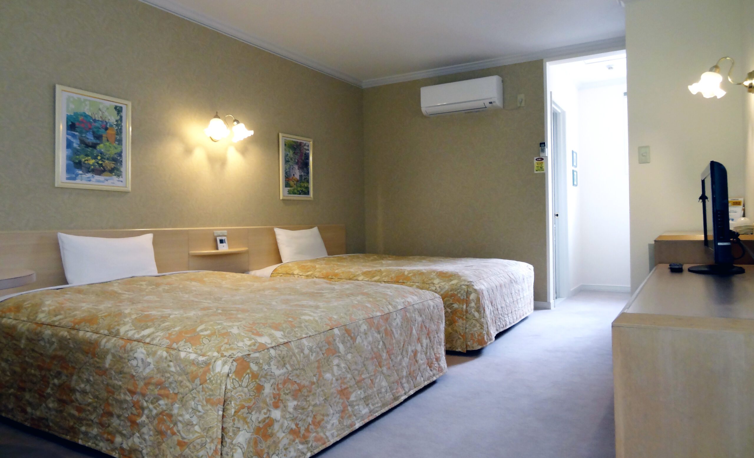 ツインルーム :クイーンサイズベッド(2台幅1.5m、Wベッドより少し大きい)
