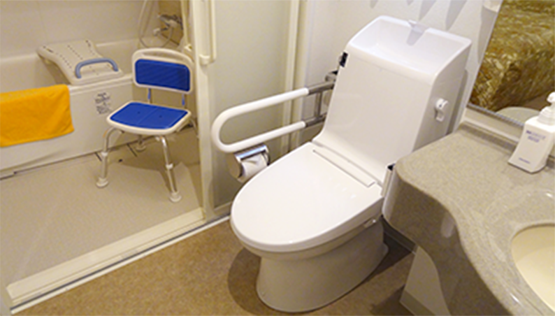 車いすや体の不自由なお客様にも快適にお泊りいただけるよう段差のないバリアフリールームを用意しております。(1店舗1室。67店舗に設置)