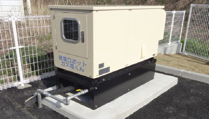 この発電機はプロパンガスを動力源とし、停電時の起動から通電再開時の停止まですべて自動で行われます。発電能力に制限があるため、空調設備の稼働は困難ですが、照明・通信・テレビ・給水給湯設備は通常通り使用可能となります。ガスボンベ1本で8時間程度の連続運転が可能なため、数日間は電気を供給し続けられる見通しです。